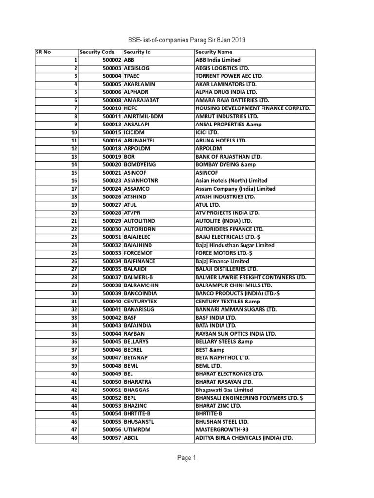 Bse List Of Companies Parag Sir 8jan 2019 Industries Economy Of India Beautiful Natural Rustic Simple Peaceful Spiritual Home Decor